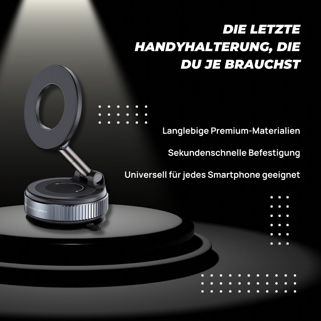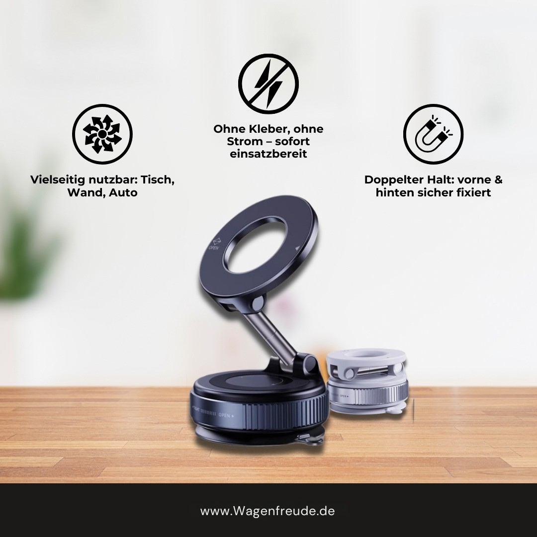 Mit der Wagenfreude™ Handyhalterung sitzt dein Smartphone bombenfest – dank extra starker Magnetkraft und Vakuum-Saugfuß. Keine Kleber, keine Schrauben, kein Verrutschen.