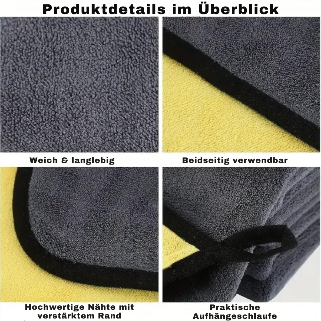 Hochwertige Mikrofasern, randverstärkte Verarbeitung und sorgfältige Qualitätskontrolle machen es zur ersten Wahl für alle, die Wert auf Lackschutz, Effizienz und Langlebigkeit legen.